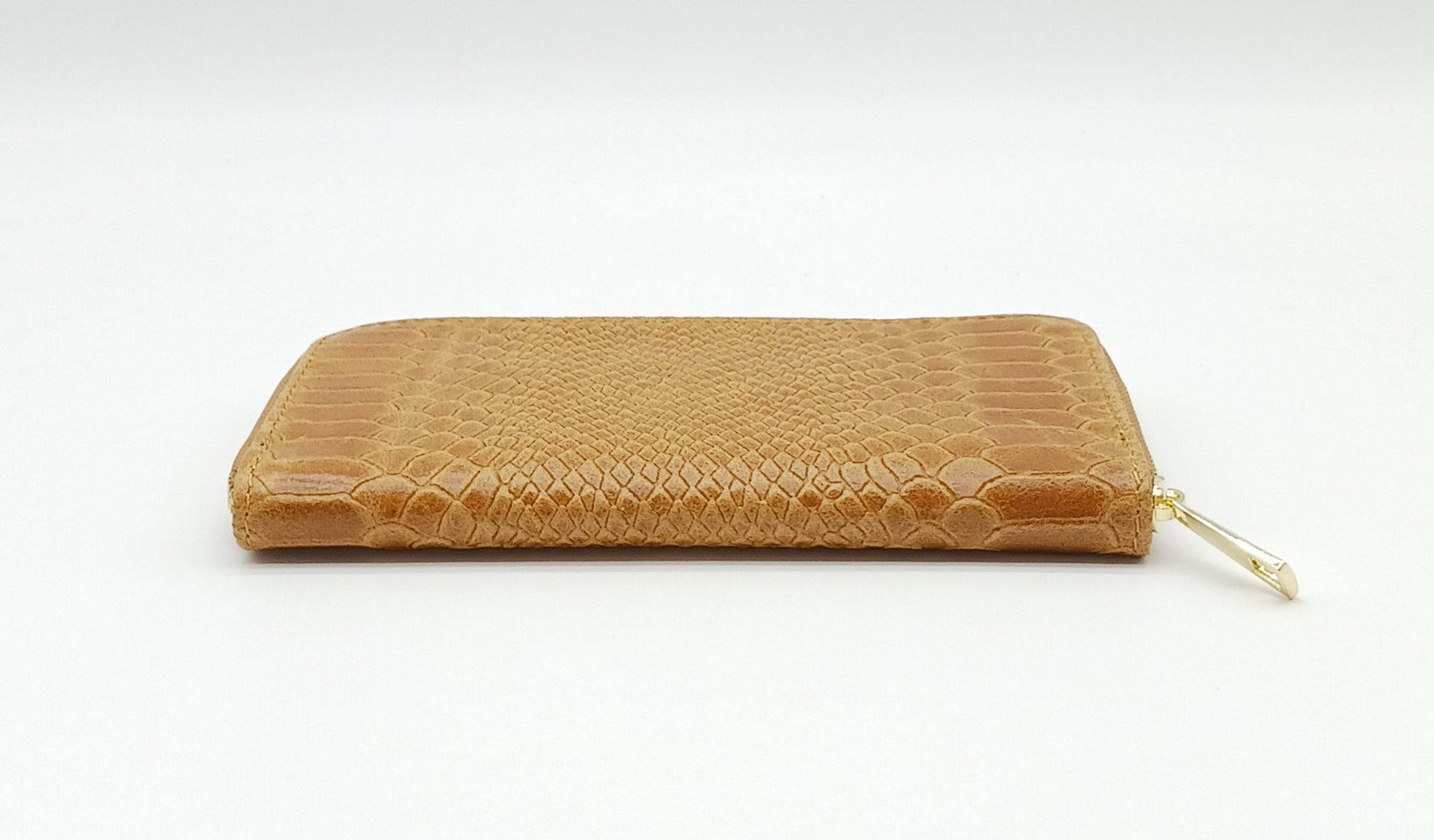 Genuine Snake Embossed Leather Zip Wallet – Made In Italy - Brown