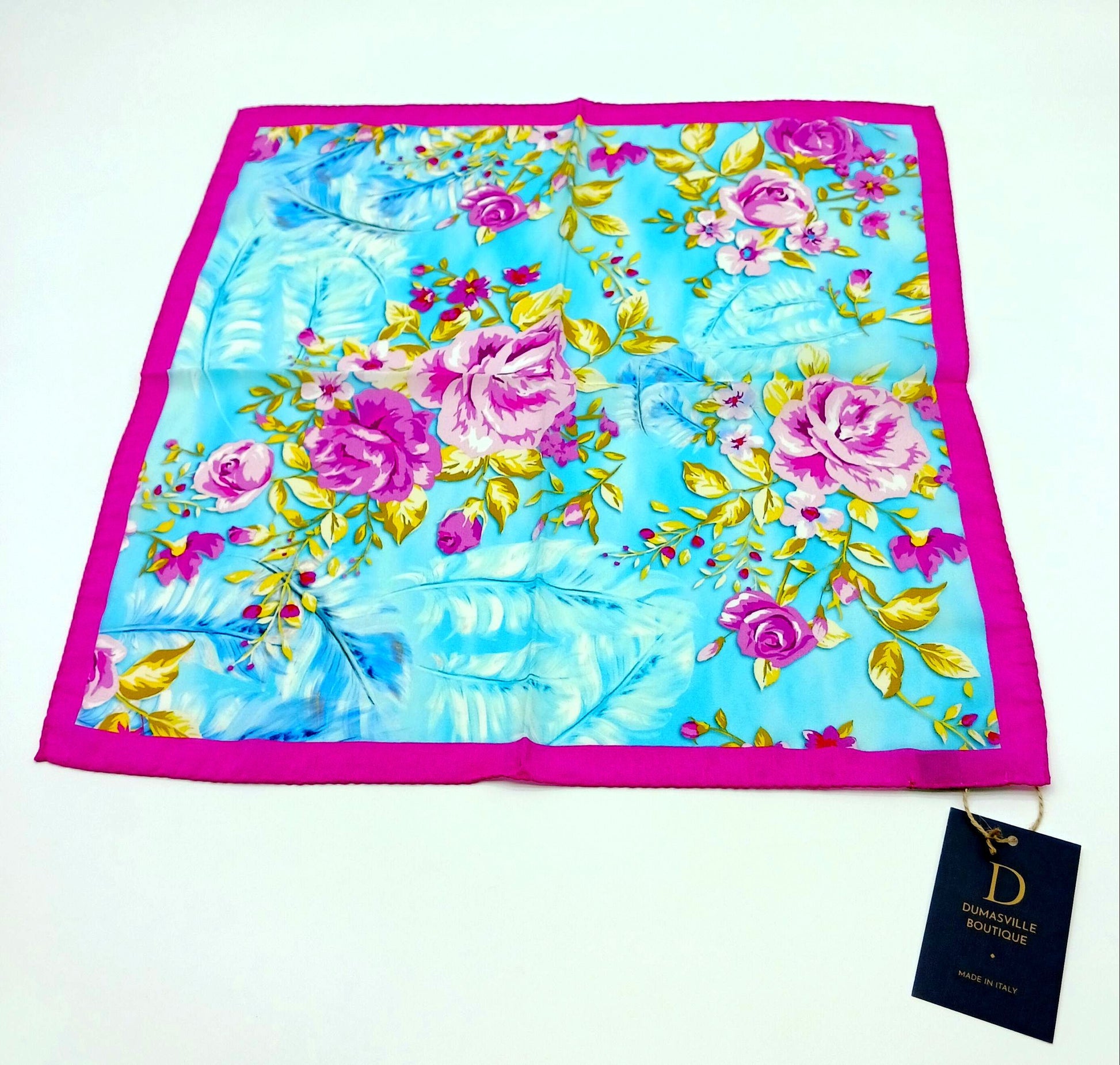 Silk Pink Sky Blue Handkerchief/Neckerchief Floral Square Scarf 17x17 – Made In Italy
