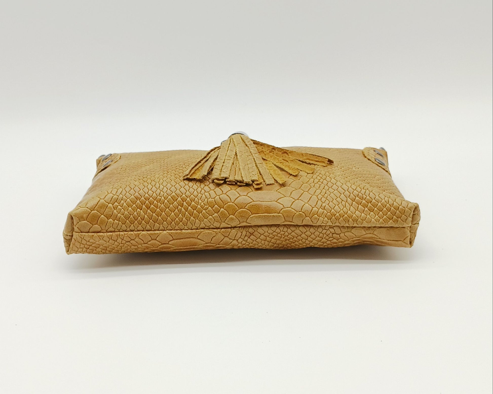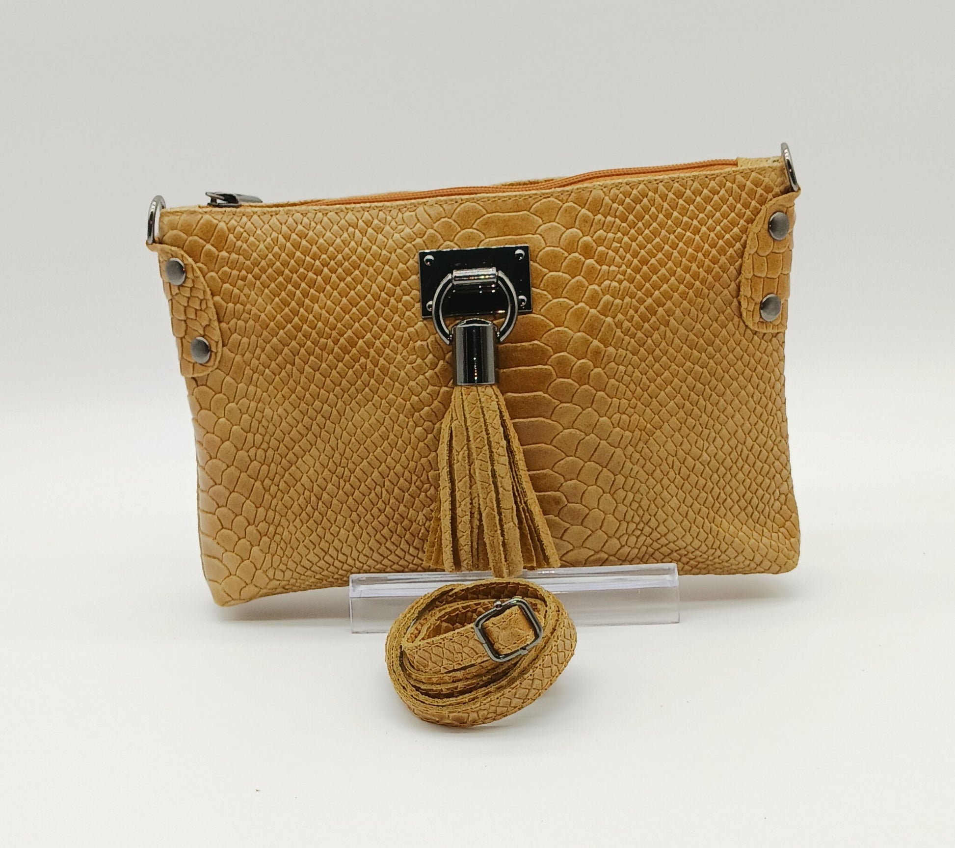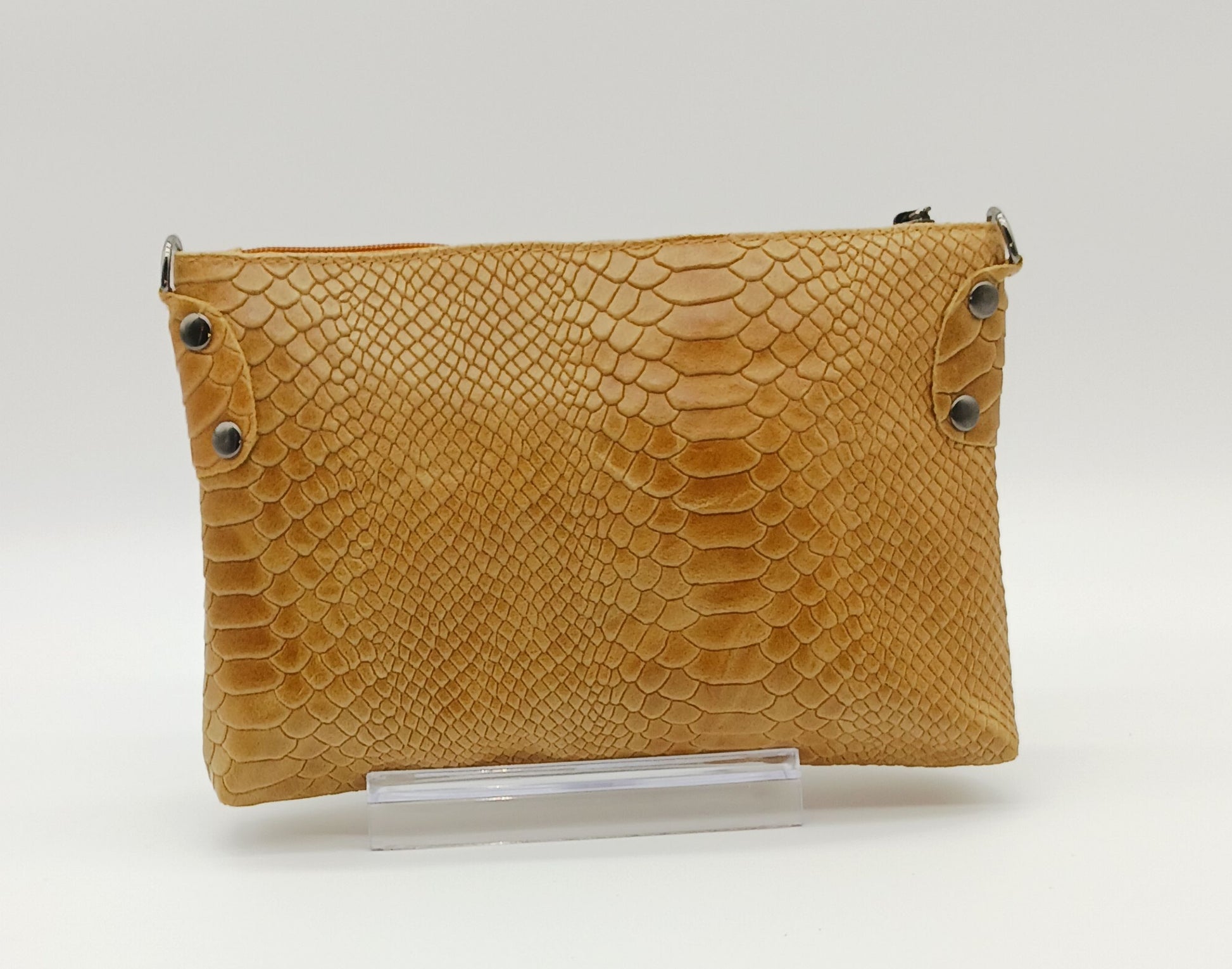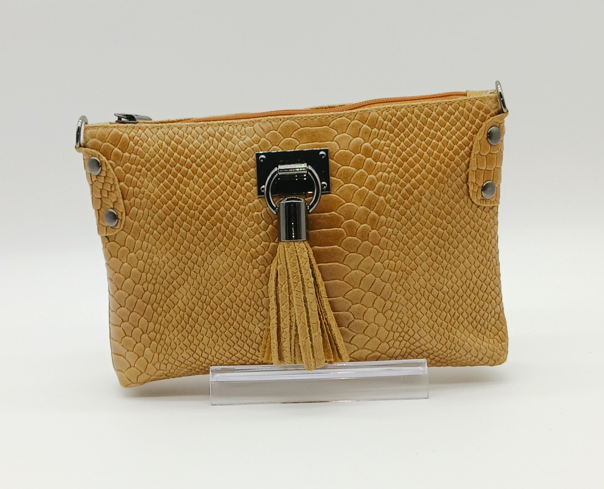 Snake Embossed Genuine Leather Crossbody Handbag - Cognac Brown – Made In Italy