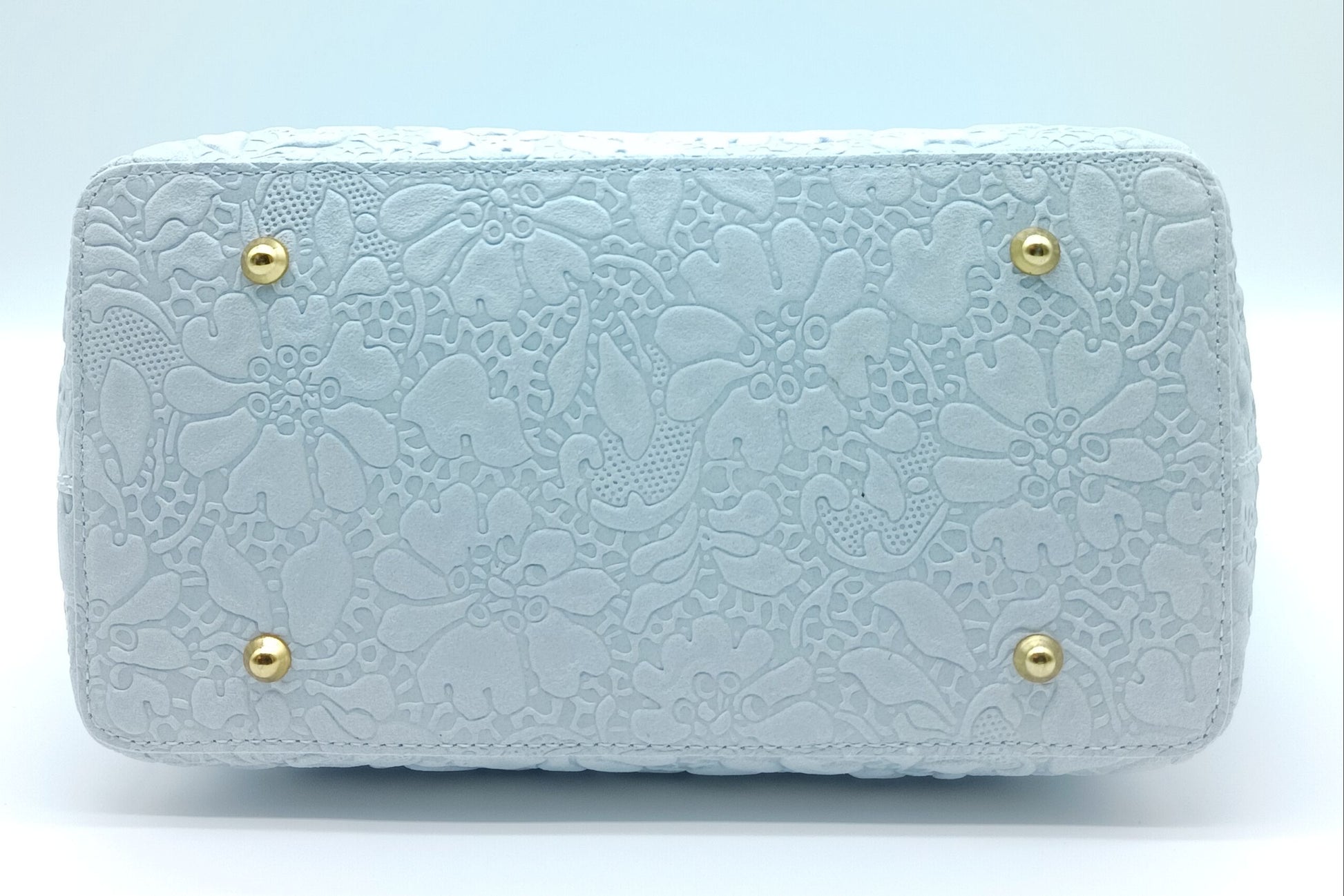 Light Gray Genuine Leather Floral Embossed Handbag Satchel – Made In Italy