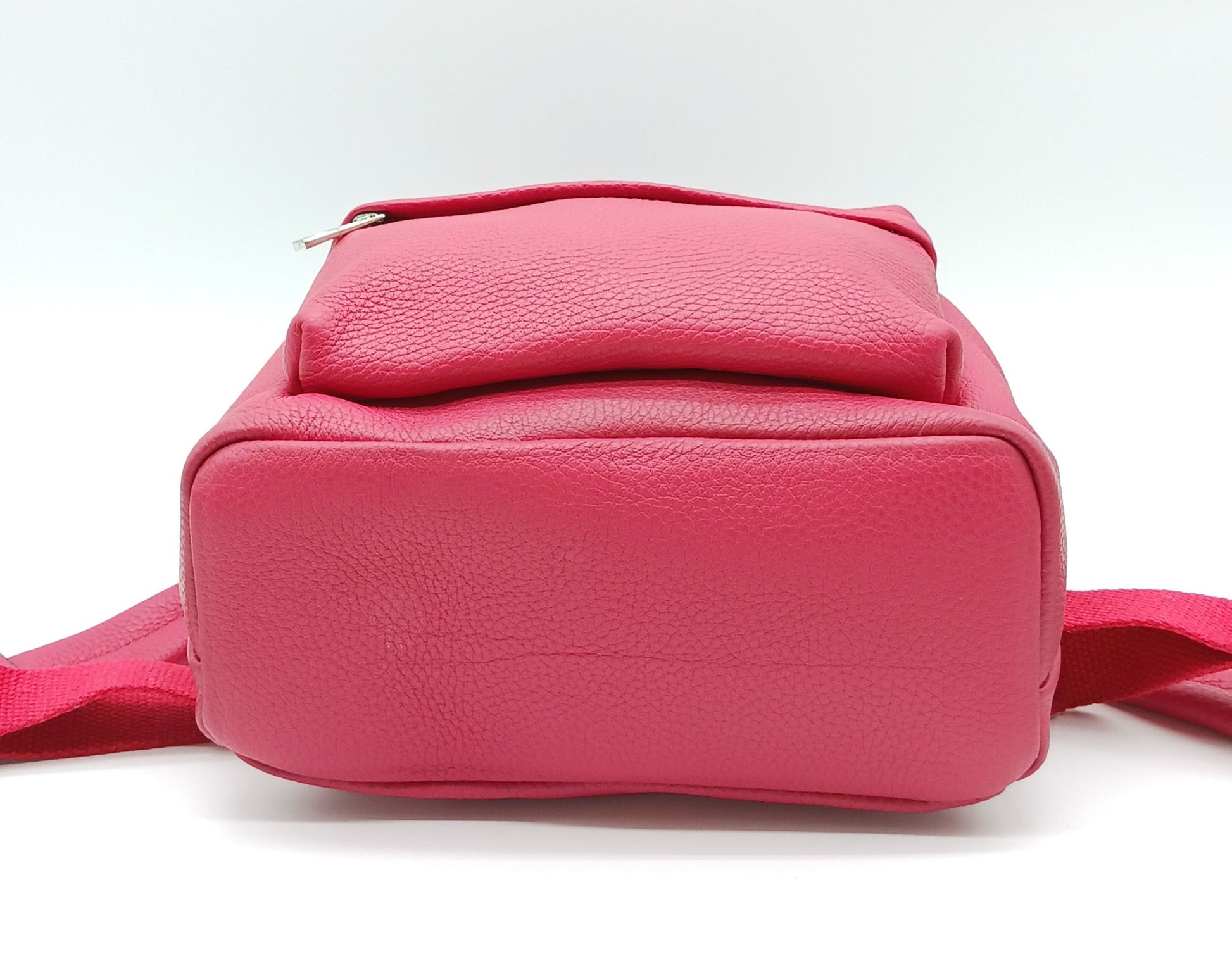 Red Genuine Pebble Leather Backpack – Made In Italy